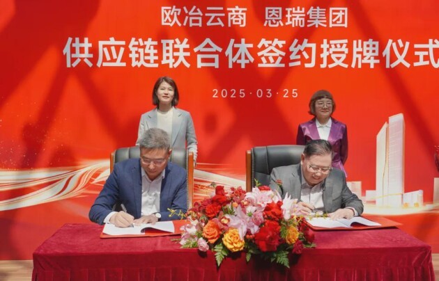 2025年3月25日,长沙金霞经济开发区恩瑞国际物流城传来喜讯,欧冶云商和恩瑞集团正式签约授牌,双方组成在湖南唯一的供应链联合体,在管委会、金融机构及行业协会、重点钢贸企业等多方代表参加见证的签约授牌仪式上,双方表示,将携手推进仓储、加工、配送、交易、物流、服务等核心领域的深度合作,进一步优化湖南区域钢铁供应链体系,推动行业向数智化迈进,为地区的产业升级和经济发展注入新的活力。