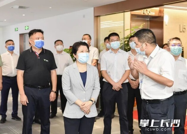 省委常委、市委书记吴桂英在马栏山视频文创产业园调研。图为长沙晚报全媒体记者 余劭劼 摄