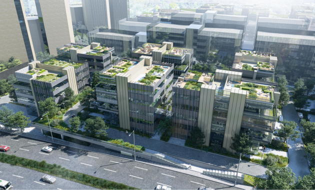 项目B区、D区将产业紧密与城市生活交融,构建城市与产业、企业与员工、建业与百姓的共融,以多样化配套致力于构建“人城产”融合发展的智慧产业社区,既能装得下工作,又容得下生活,为产城融合树立未来生活范本。